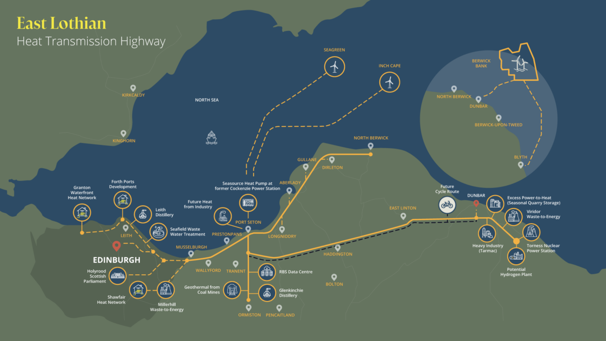 East Lothian’s recently approved Local Heat and Energy Efficiency Strategy (LHEES) includes a proposal to investigate the option of making use of low-cost, industrial waste heat so feed a heat transmission highway across East Lothian. This would then feed a district heating network to supply heat to residents in Dunbar.