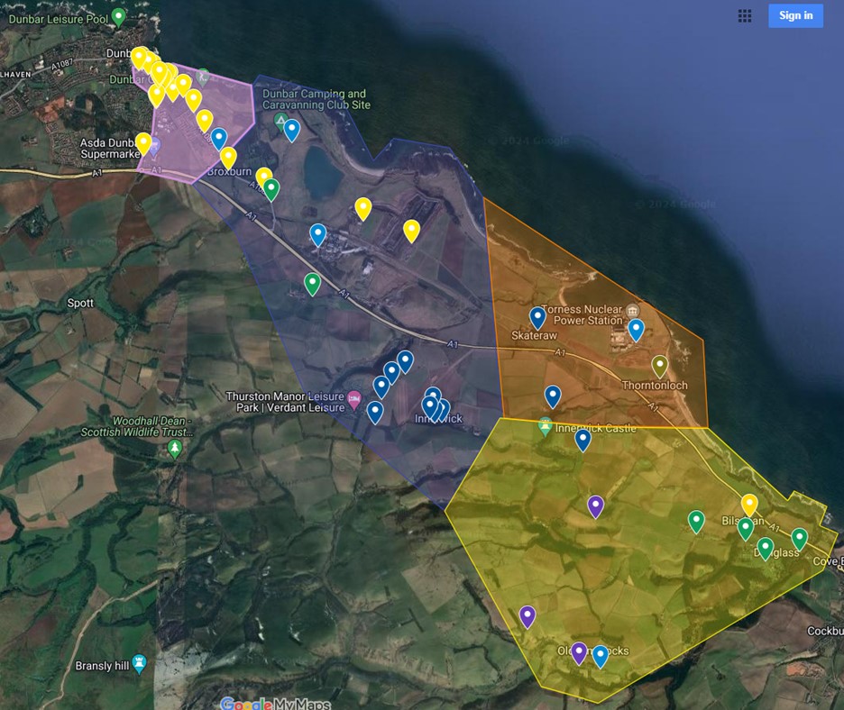 The DRT operation service hours would be linked to commuting services Mondays to Fridays 0700-2100and from direct points only from the area covered: Oldhamstocks, Dunglas, Bilsdean, Innerwick, Thorntonloch, Skateraw and Broxburn to: