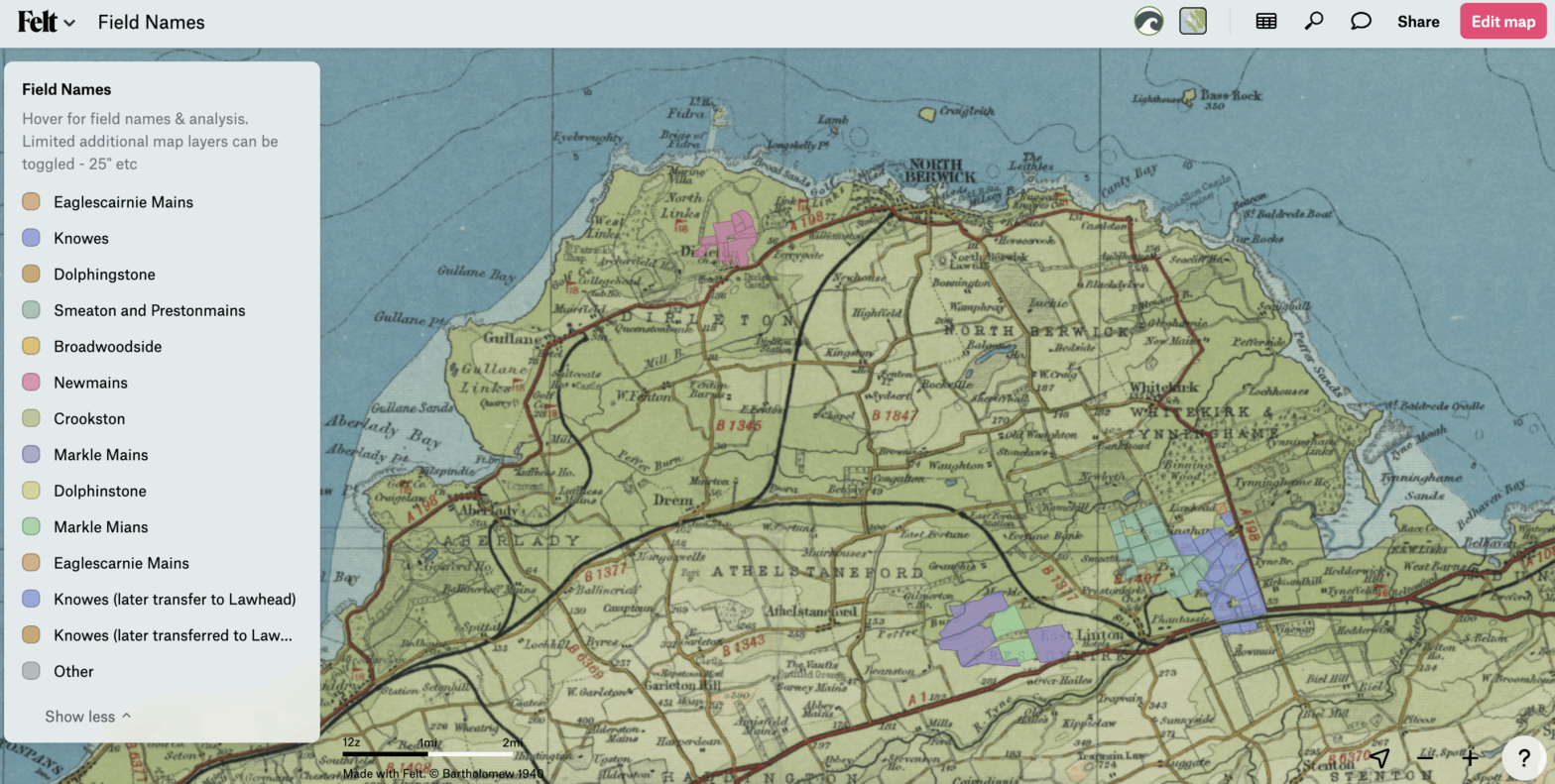 A project to explore the names and etymology of fields in East Lothian, created by the East Lothian Antiquarian and Field Naturalists Society