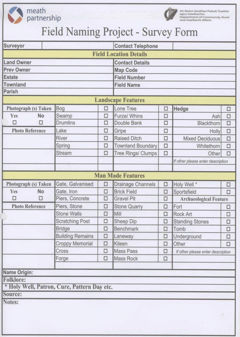 Here is a clear step-by-step methodology summary of the Meath Field Names…