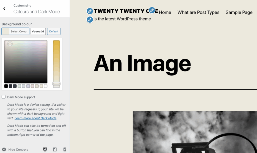 First off there’s a selection of default colours that are designed with Dark Mode support in mind. So will suit blog posters whose audience is nocturnal.