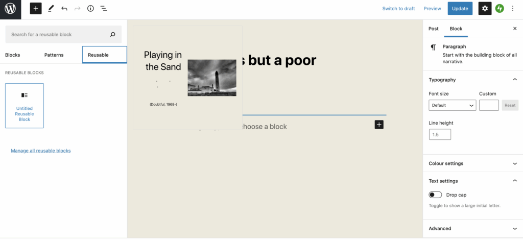 There are a ragbag of attractive additions to the Block Editor too. But if you are stuck or wedded to Classic Mode still, you won’t be able to enjoy these until you switch over. You can also switch pages and posts selectively, if you are still trying things out.