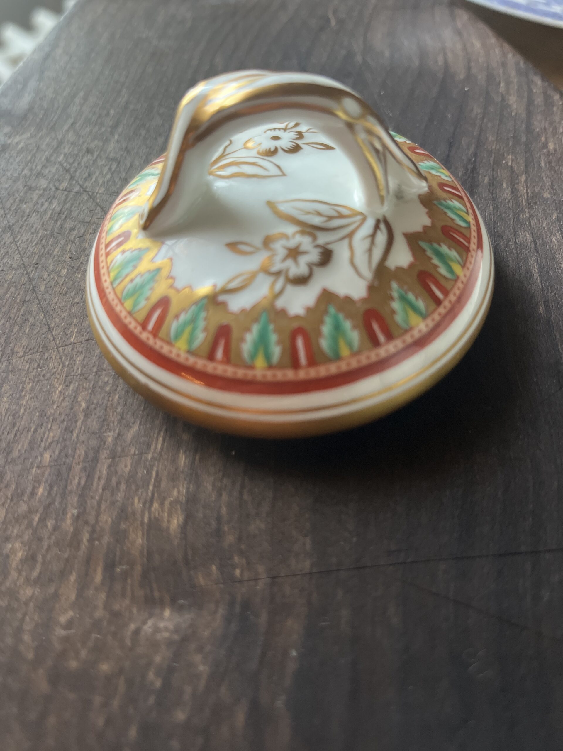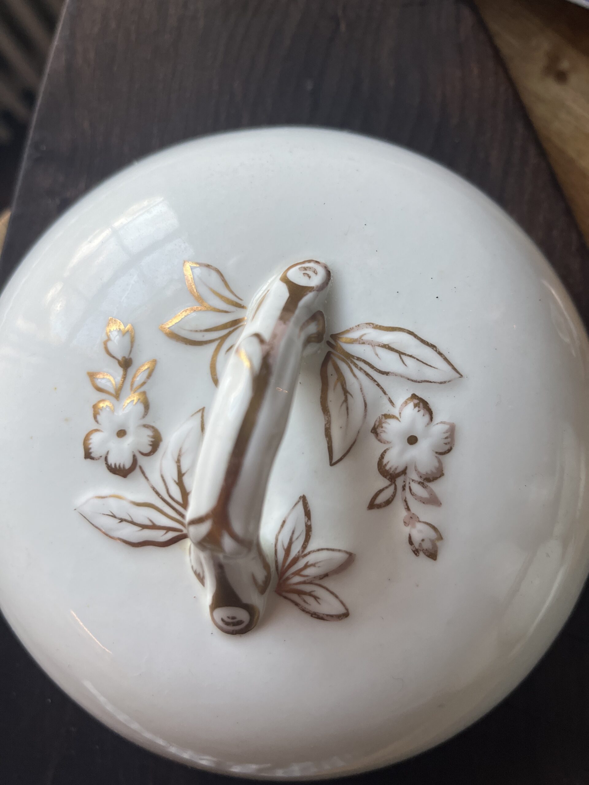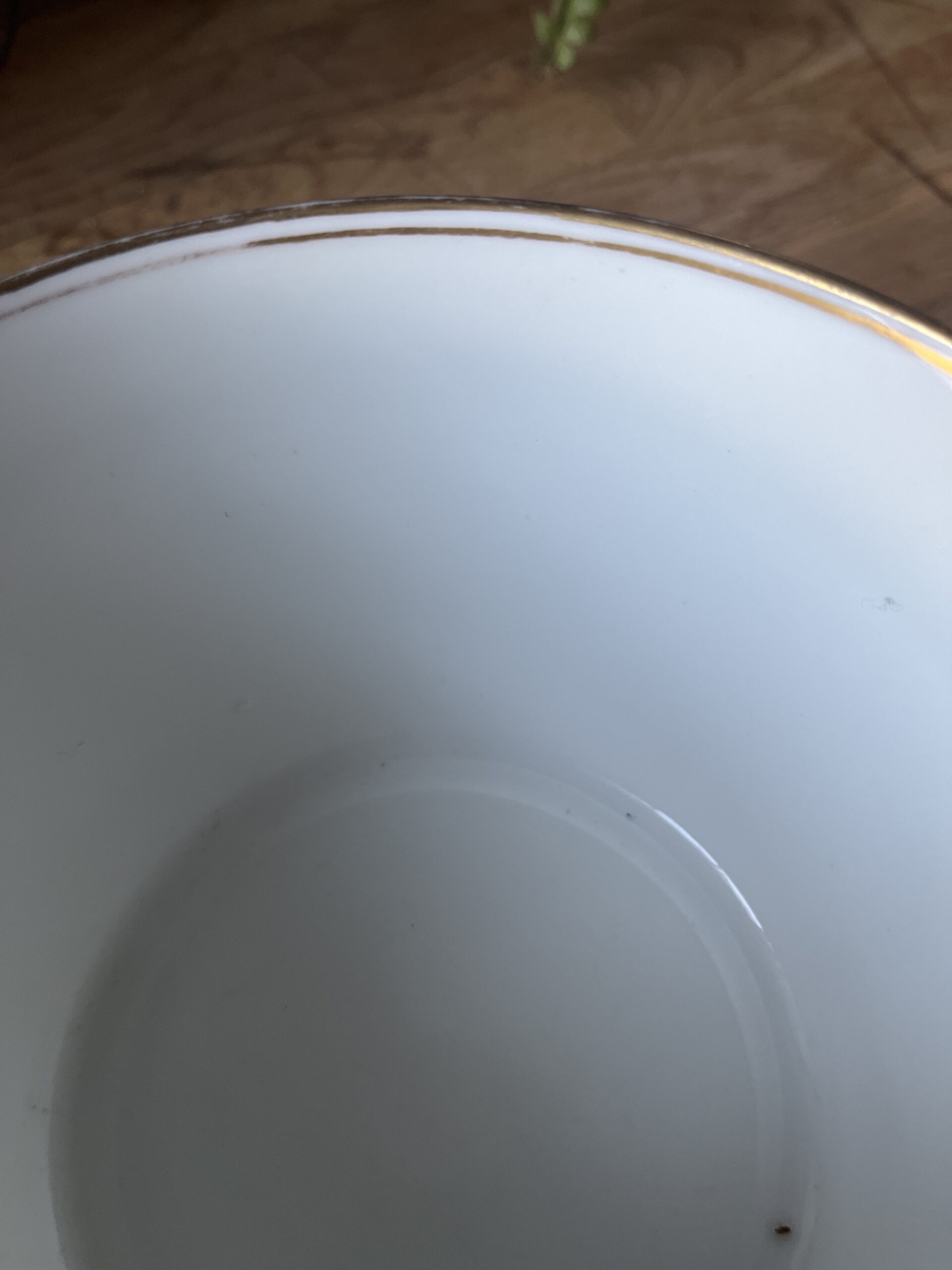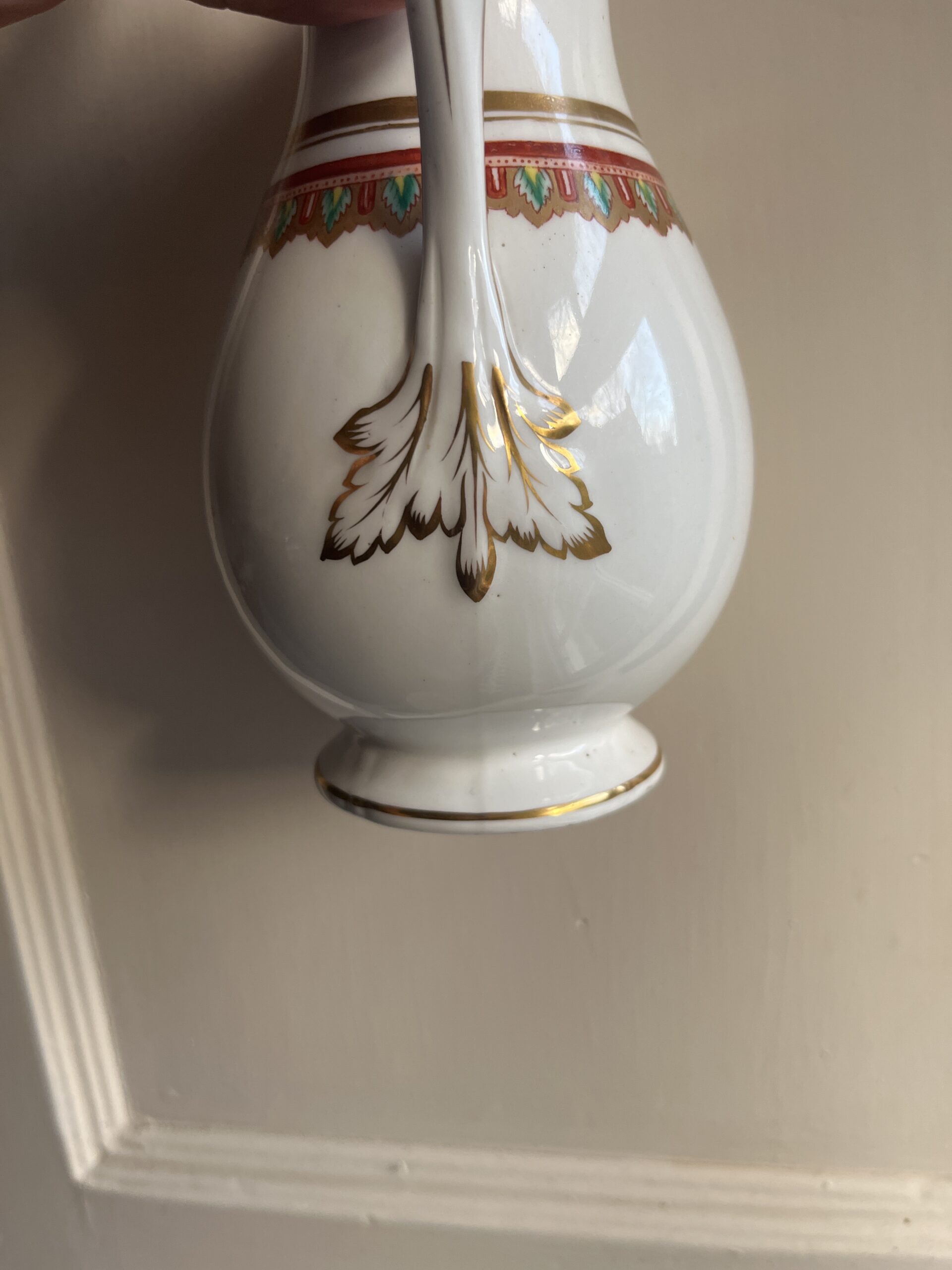 This one began with a breakfast set. Or rather, a partial breakfast set. A handful of cups, rather a lot of plates and saucers, a jug, a sugar bowl, egg cups, a couple of covered dishes. White porcelain, confident shapes, and a bold border: iron red, turquoise-green leaves, and thick gilding. It looked Victorian. It looked serious. It also looked like something that might send you down the wrong path if you weren’t careful.