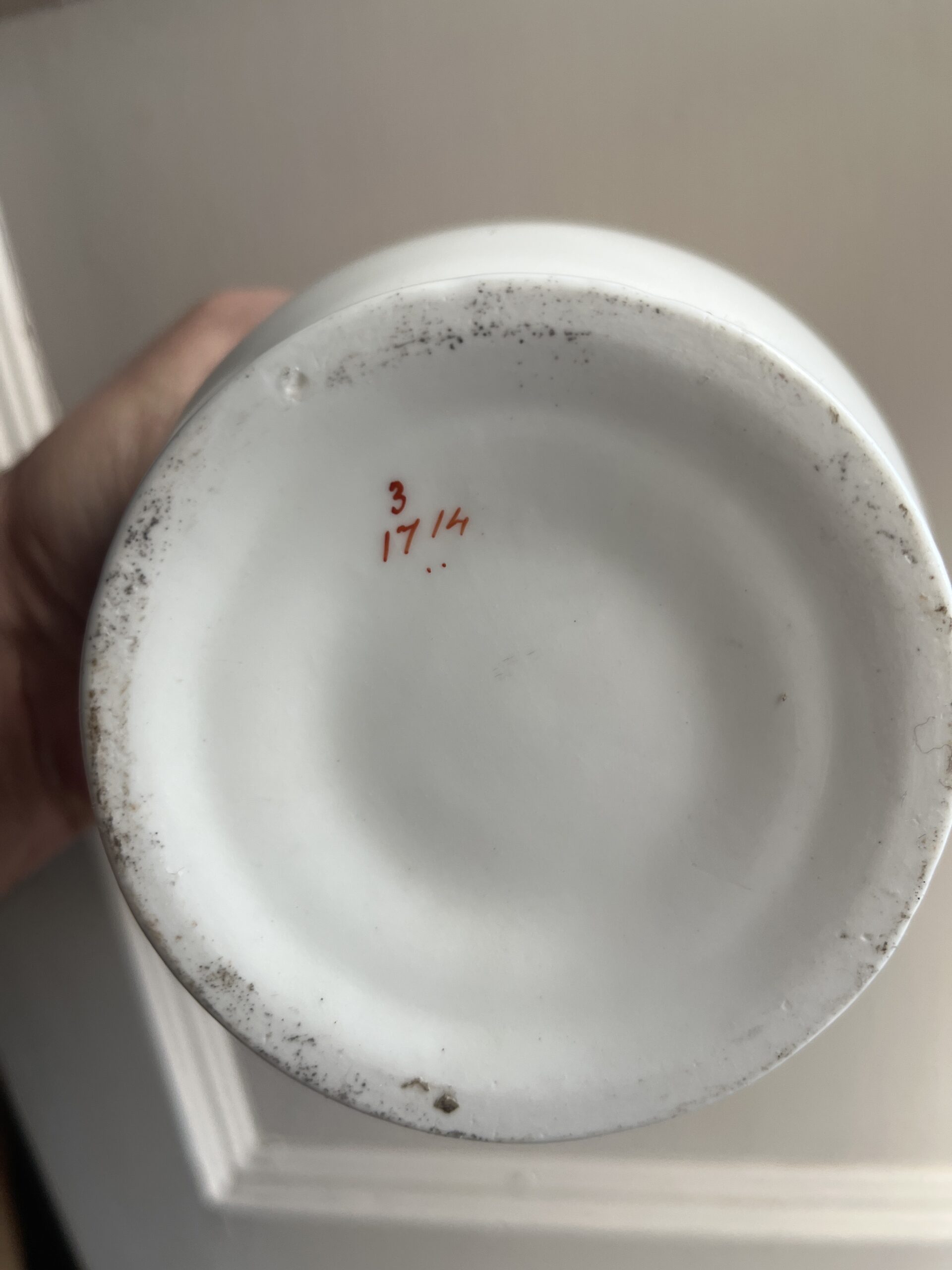 There are red handwritten numbers on the bases. They look tempting. They aren’t secret dates or lost pattern numbers. They’re painter’s or gilder’s tally marks — workshop bookkeeping so people got paid. They tell you nothing you need to know about age or value.