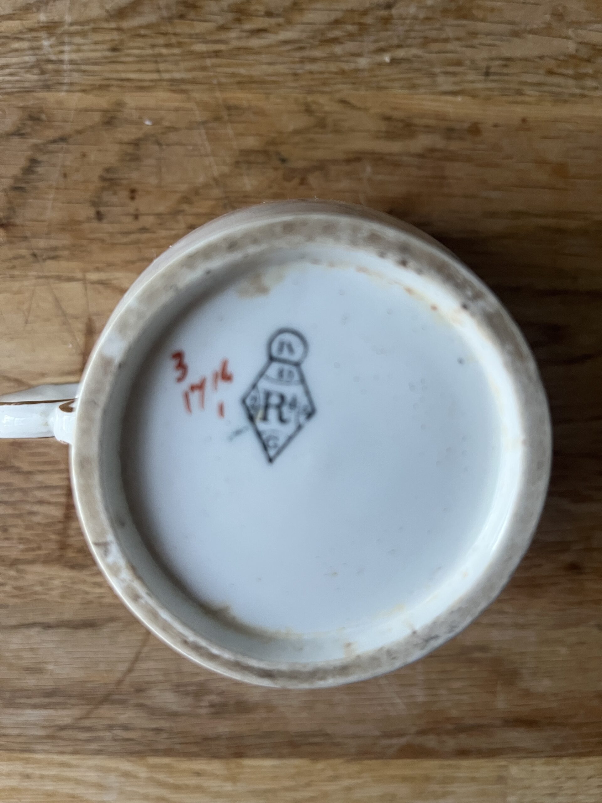 On one cup base there’s a diamond mark. That’s not a maker’s mark, and it’s not decorative. It’s a British Registered Design diamond, used between 1842 and 1883. Read correctly, it gives you a date the design was registered, not who made it.